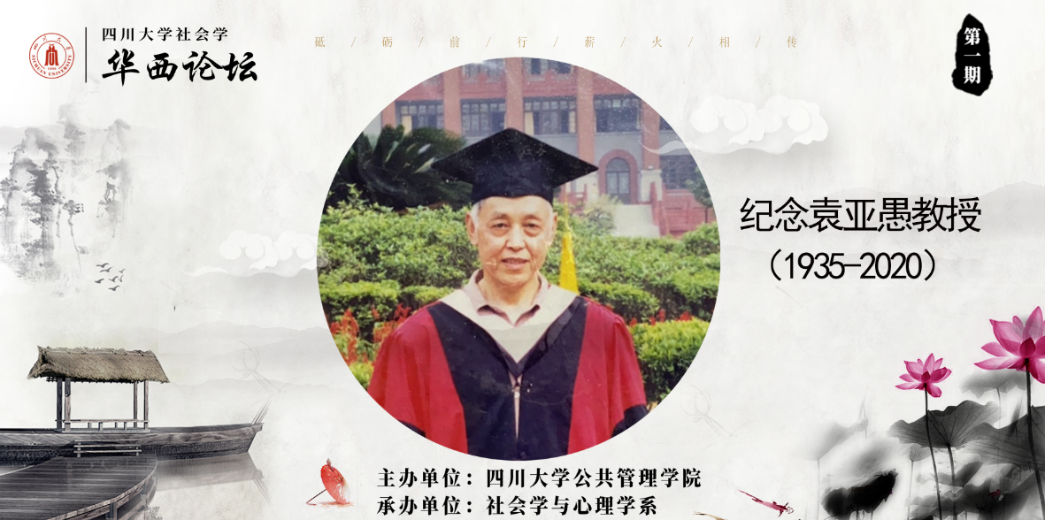 2020年6月20日,我国著名社会学家袁亚愚因病逝世。袁亚愚先生是我国农村社会学的奠基人之一,四川大学社会学百年发展史中承上启下的重要学者,四川大学社会学的领路人。四川大学社会学•华西论坛为纪念袁亚愚教授而设,四川大学公共管理学院追思袁先生对学科的卓越贡献,联系到多位与我校社会学颇有渊源的著名社会学家鼎力支持,以线上学术讲座的方式表达四川大学社会学砥砺前行、薪火相传的使命与担当。