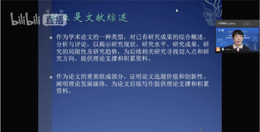赵媛教授带来的第二场讲座题目是《文献综述及其撰写方法》。她围绕文献综述是什么,文献综述有什么功能与作用,以及如何撰写文献综述三个问题展开讨论。她提出,在撰写文献综述时,对文献资料的全面收集整理是基础,对文献的梳理与分析是手段,把握总体研究特征是要求,总结学术观点、理论发展脉络是重点,对问题的分析及未来的预测是水平体现,为即将进入研究生阶段的营员们撰写学术论文规范了格式,指明了方向。