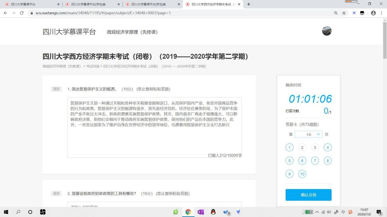 按照学校要求,所有考试周课程都制定了详细的线上考试方案,并自第16周开始,本科课程陆续进行了形式多样的线上期末考试工作。截至第20周考试周结束,所有课程均完成了线上考试。我院考试周课程全部严格按照考试方案顺利完成期末考试工作。