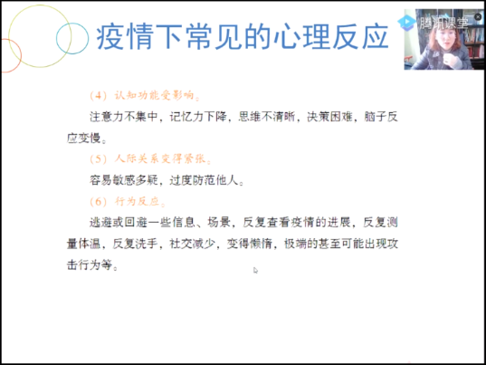 又如李诗颖副教授所授的《社会心理学》课程,李诗颖副教授为做好疫情防控期线上第一课,她在开学前十几天就全情投入“在线教学”准备中,主动与同学们联系,询问同学们对线上教学方式的建议,倾听同学们的心声,测试各种软件以求达到最好效果,并且特地撰写了《给同学们的一封信——关于教学理念、教学内容和形式的沟通》,让学生对社会心理学的核心理念、课程内容和学习方法有提前认识和掌握。课堂中,她结合疫情防控时期的社会热点时事与学科专业特点,带领学生贴近社会生活,以专业知识讲述如何应对疫情防控期心理问题;她采用文字、图片、视频结合的方式,让同学们在既严谨又幽默的课堂中享受学习的乐趣。