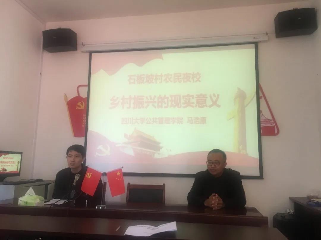 11月10日上午,马浩原同学对石板坡村的村民开展了强农惠农政策的宣讲,他用生动有趣的讲解告诉村民学员们乡村振兴的现实意义,就是要不断缩小城乡差距,让农业成为有奔头的产业,让农民成为有吸引力的职业,让农村成为安居乐业的家园。