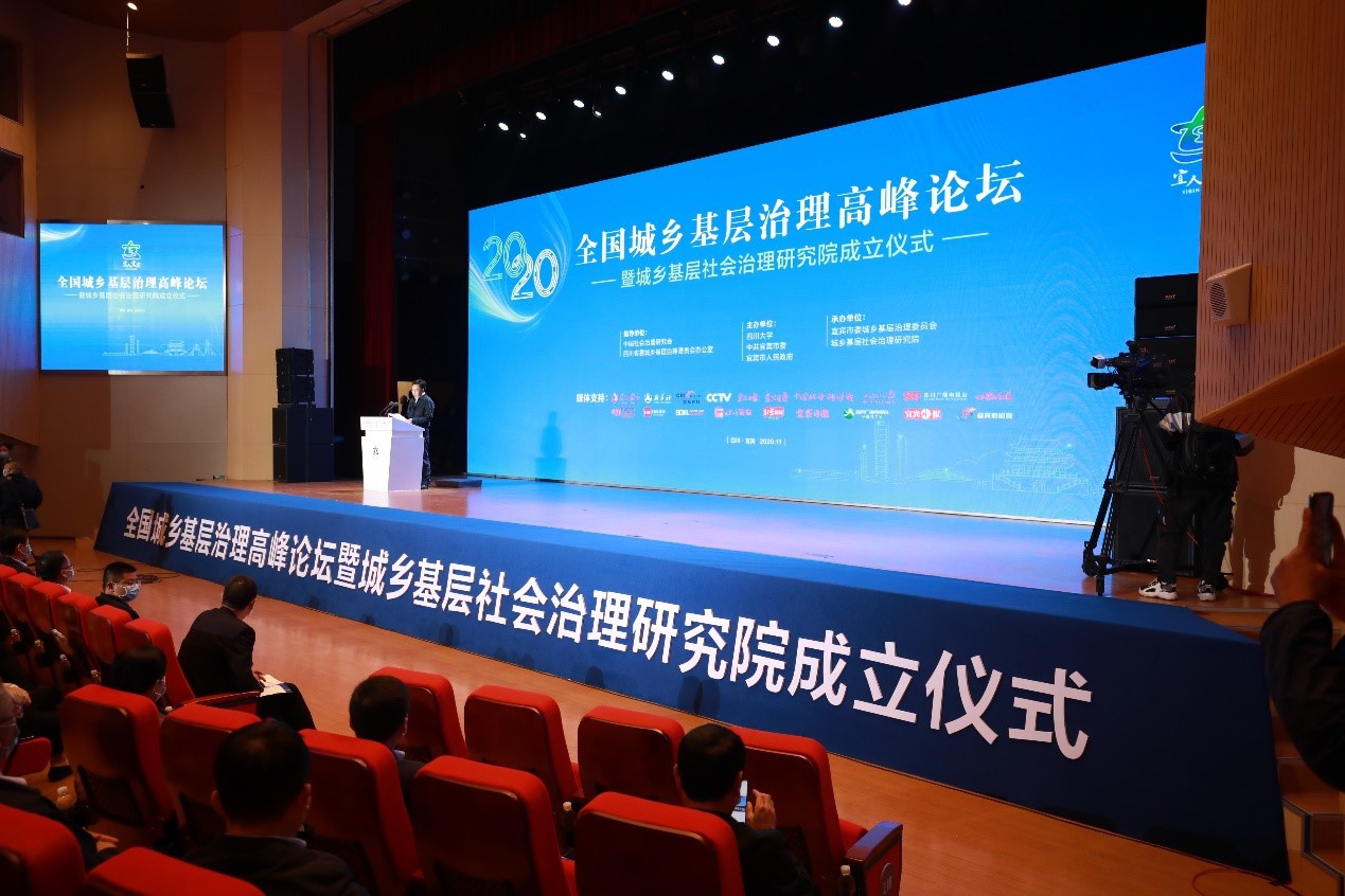 在十九届五中全会刚刚落下帷幕之际,四川大学联手宜宾市委、市政府,于11月13-15日在宜宾举办全国城乡基层治理高峰论坛暨城乡基层治理研究院成立仪式。参会代表200多人齐聚长江首城,包括来自农业农村部政策与改革司、中国社会治理研究会的领导,部分双一流大学的政治学和公共管理领域的专家学者,新华社、人民日报、法制日报、农民日报等央媒和川媒代表,《新华文摘》《中国社会科学文摘》与人大复印报刊资料中心领导,国内20多家国家社科基金资助期刊主编以及宜宾市各部门、区县和镇村干部代表,与会嘉宾先就宜宾市域农村基层治理和城市基层治理进行实地考察,然后围绕“城乡基层治理”这一主题开展学术研讨,最后发表了《基层治理宜宾共识》。