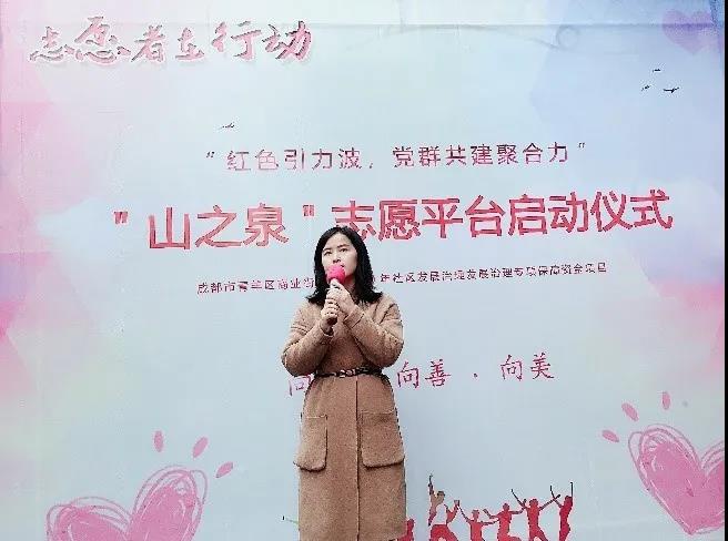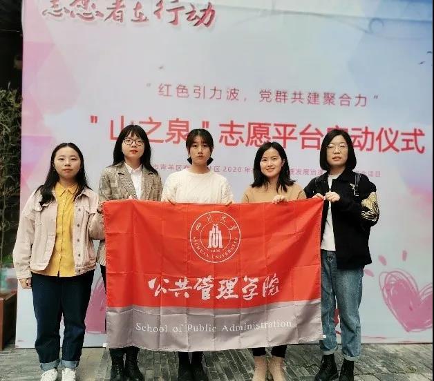 为进一步弘扬“奉献、友爱、团结、互助”的大学生志愿服务精神,为学院学生提供社会实践平台,助力社区营造温暖家园,我院与成都市青羊区商业街社区协商共建志愿服务社会实践基地。11月11日上午9:30,学院团委书记青杨媚与学生会主席强甜同学、研究生会主席田茜同学、“朝阳”青年志愿者服务队李佳淇同学、黄楷同学受邀前往成都市青羊区商业街社区参加志愿平台启动仪式暨志愿服务社会实践基地签约仪式。