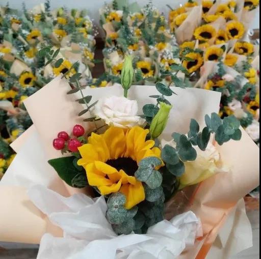 正如现场为每位考研学子准备的暖心包那样:一份防疫物资,叮嘱学生们做好防护;一份向日葵鲜花束,祝愿学子在考试中“一举夺‘葵’”。
