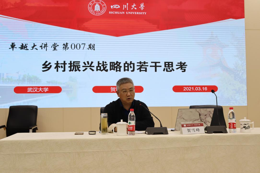 2021年3月16日,武汉大学社会学院院长,博士生导师,社区治理专家委员会成员贺雪峰教授应邀到访我院,为我院师生作题为“乡村振兴战略的若干思考”讲座。
