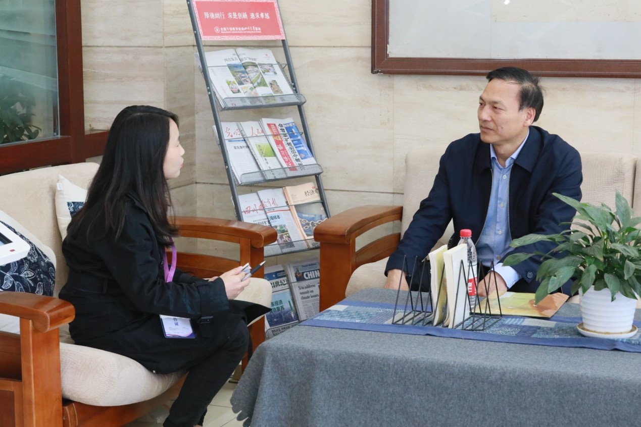 图一 朱明仓副厅长(右)接受我院赵茜宇副教授(左)采访