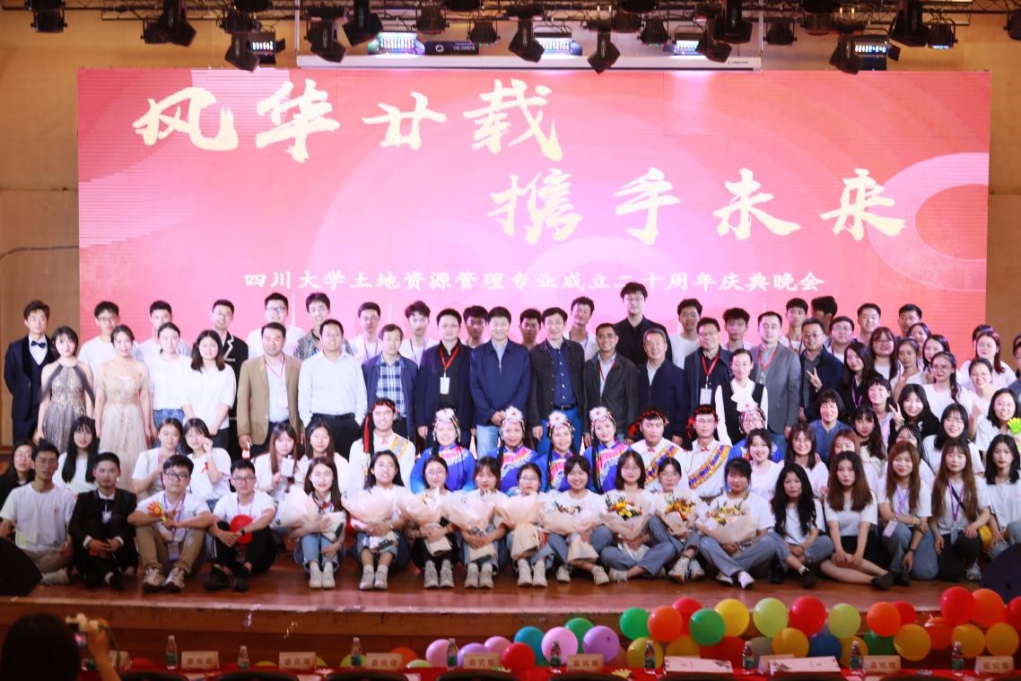 2021年4月24日晚上7点,四川大学土地资源管理专业成立二十周年庆典晚会在四川大学文华活动中心二楼音乐厅举办,王庆日、张安录、卢新海、陈美球、谭术魁、柯新利、谭荣、李效顺、吴宇哲、郭杰等知名专家和参会的博士生、历届校友们齐聚一堂,共同观看了土地资源管理系师生精彩纷呈的文艺节目表演。