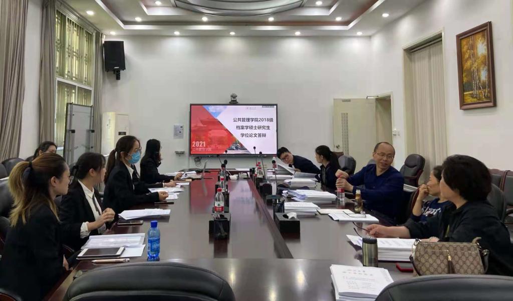 2021年4月29日下午13:30至18:30,档案学2018级硕士研究生学位论文答辩会在公共管理学院三楼会议室顺利举行。