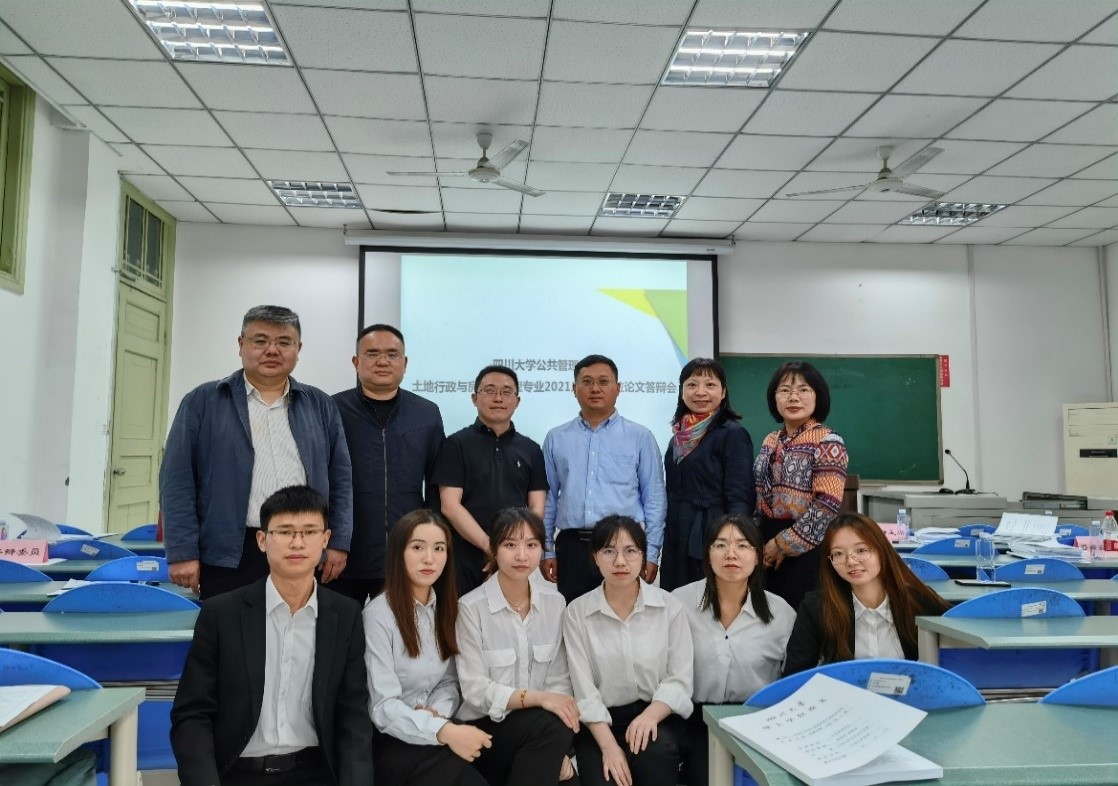 2021年5月7日下午,土地资源与房地产管理系2018级硕士研究生学位论文答辩会在公共管理学院206教室举行。四川师范大学任平教授应邀作为答辩主席,主持了本次答辩会,答辩委员会成员包括四川省社科院廖祖君研究员,四川大学公共管理学院土地资源与房地产管理系刘润秋教授、朱红波教授、杨智恒副教授、马爱慧副教授。土地行政与房地产管理专业2018级硕士研究生均参加了此次答辩会,其他年级研究生在现场旁听。