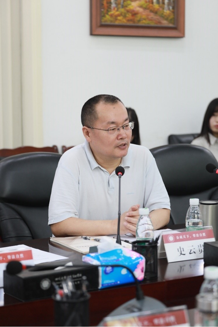 史云贵院长代表学院对西北大学公共管理学院雷晓康院长一行的到来表示热烈的欢迎,他向客人们介绍了学院的历史沿革、学科设置、师资构成、MPA教学管理以及国际合作与交流等方面的情况。