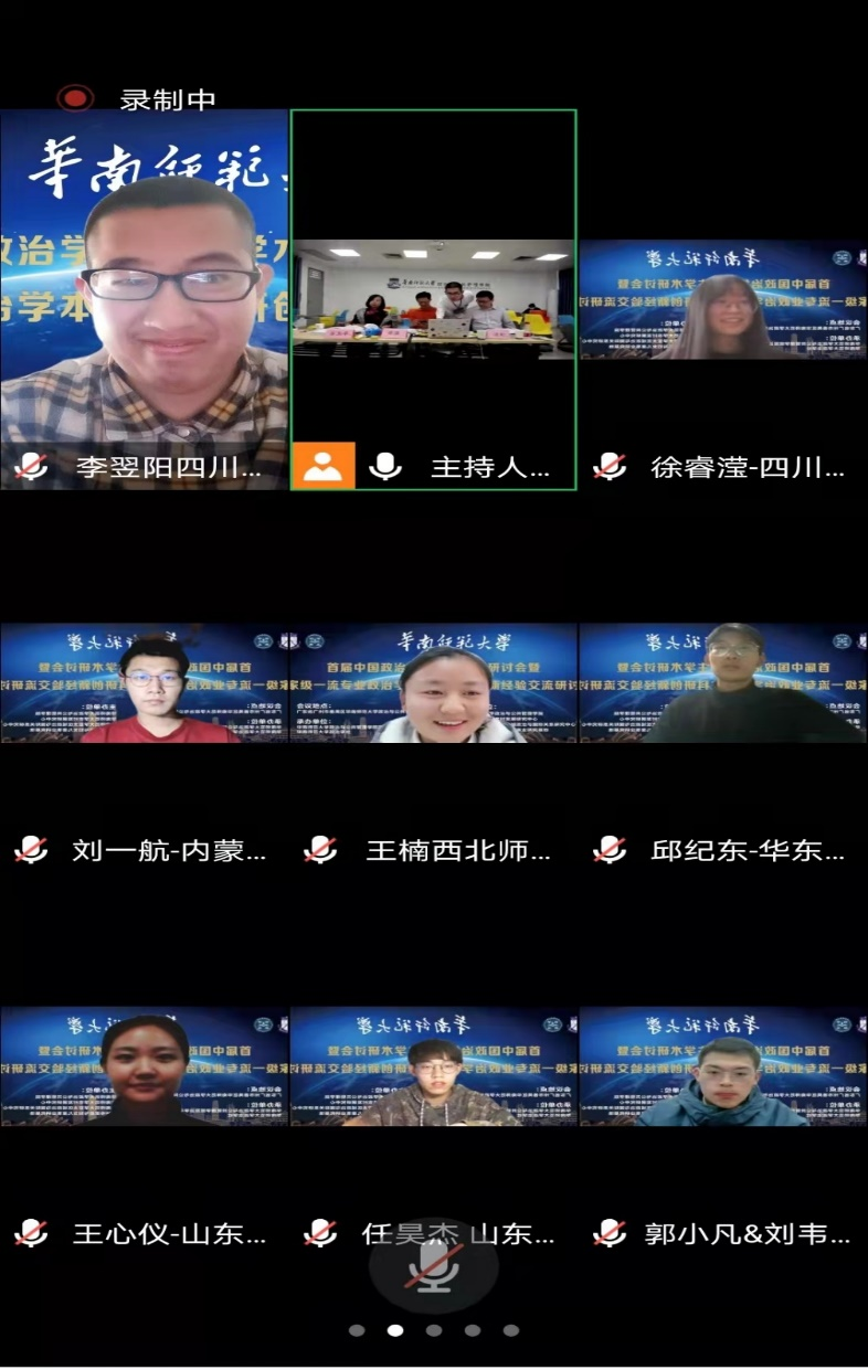 2021年11月28日,由华南师范大学政治与公共管理学院主办的首届“中国政治学本科生学术研讨会暨国家级一流专业政治学本科生科研创新经验交流研讨会”顺利召开,论坛主题为“国家治理体系和治理能力现代化”。本次论坛采用线上与线下结合的方式,来自四川大学、中国人民大学、中山大学、武汉大学、南开大学、山东大学、华南师范大学等多所高校的本科生参会,共同探讨、展示和交流政治学与公共管理相关专业本科学生们的科研成果,了解学术前沿。我校行政管理专业2020级本科生李翌阳、2019级本科生徐睿滢线上参会。