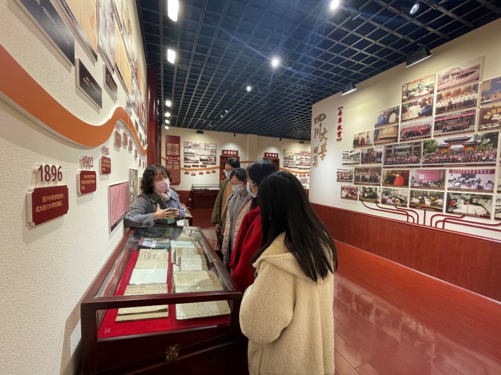 12月7日下午在医学图书馆花雨厅研讨室,同学们与何艳艳、梁金萍、赵萍等老师们面对面交流,进一步了解医学图书馆的空间设置和资源概况,感受到医学馆浓厚的学习氛围。在馆史展览馆,黄欢老师绘声绘色为同学们讲述四川大学图书馆历史,同学们通过观看实物与照片的方式见证了四川大学图书馆的发展。
