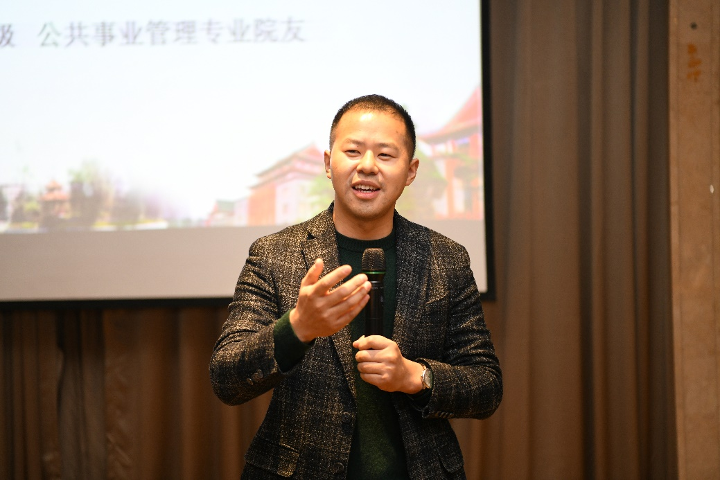 公共管理专业高展院友从青年学生要立志做大事,立德修身、终生学习、正道直行、培养健康的生活情趣5个方面和同学们进行了分享。他劝诫同学们要立志做大事,而非做大官,树立现实具体的志向并且去不断地实践它;修德修身,做一个有家国情怀的人;把学习作为终生的信仰,做好时间管理,充分利用碎片时间不断提升自己;坚守君子之风,不要走捷径,坚守做人做事的底线,踏踏实实的走好自己的路;生活上,养成良好的生活习惯,坚持时间三分法:工作的时候全心投入,工作之余陪伴家人,在前两者的基础上,加强运动煅炼。
