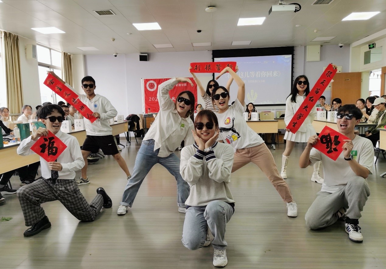 在节目表演环节。同学们表演了情景舞蹈《我在这儿等着你回来》,极富爱心和家国情怀的表演掀起了师生见面会的高潮;琵琶与二胡等乐器完成《青花瓷》等节目,乐声动听;歌曲《Our Song》《世界上的另一个我》美妙动听、活泼清新,令大家沉浸其中。老师与同学的互动环节中,廖登峰、史露淋同学与兰旭凌老师和刘超老师合唱歌曲《这世界那么多人》,在动听的歌声中,师生间的距离渐渐拉近;“传声筒”、“谁是卧底”等游戏与其他节目大都由老师和同学合作完成,充满了智慧与乐趣,同学与老师们都乐在其中。