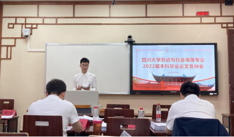 2022年5月20日下午,2022届劳动与社会保障专业本科生学位论文答辩会在四川大学望江校区第二教学楼成功举行。劳动与社会保障专业吴耀宏、罗哲、吴敏、沙治慧、李丹、张浩淼、杨红、杨斌、黄静、林熙、贺璇、黄国武、张伟科、彭峰、曾路遥、田益豪、杨帆、曹杨等18位老师出席并担任答辩评委。2022届劳动与社会保障专业全体本科生通过线下或线上方式参加了答辩。