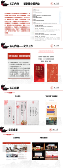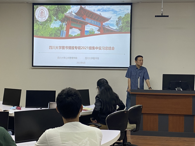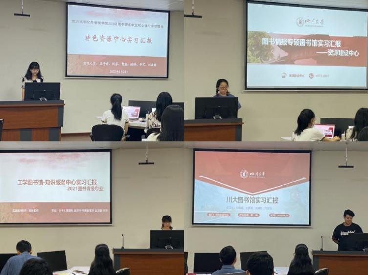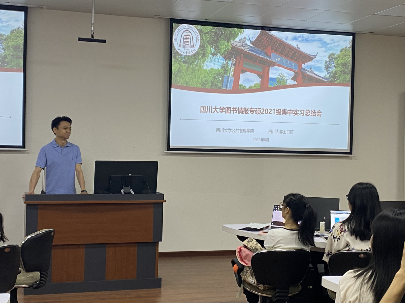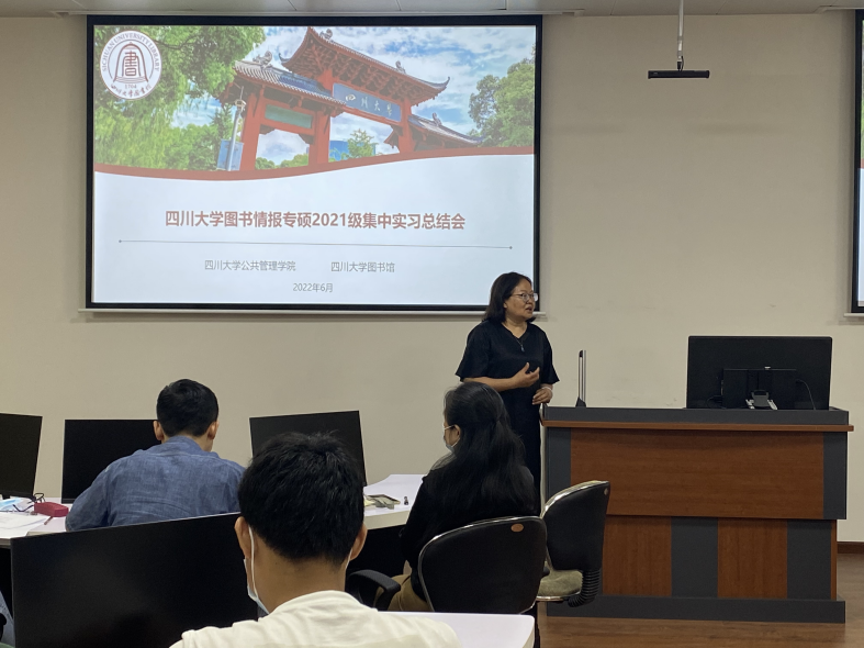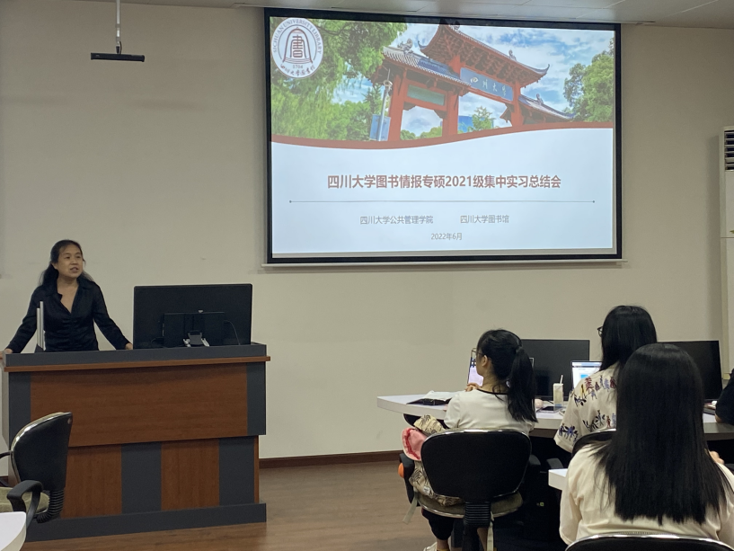 6月24日上午,2021级图书情报全体同学在工学图书馆202进行了实习总结汇报。首先,四川大学图书馆姜晓老师、公共管理学院图书情报专硕负责人范炜老师对此次集中实习进行了简要回顾。接下来,分别由在图书馆特色资源中心、资源建设中心、知识服务中心、研究发展中心实习的同学依次作总结汇报。汇报完毕后,4个部门老师分别给出了评价与总结。