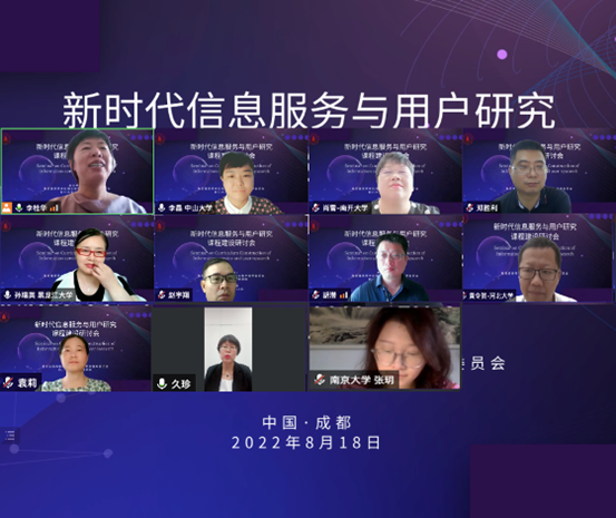 2022年8月18日上午,为持续推动教学改革以适应快速发展的信息环境对信息服务人才的需求,促进国内兄弟院校教学交流,集智汇能,打造中国特色的《信息服务与用户研究》课程品牌,“新时代《信息服务与用户研究》课程建设研讨会”在线上顺利召开。本次研讨交流会由教育部高等学校图书馆学专业教学指导委员会和四川大学公共管理学院共同主办,来自国内一流本科专业建设高校从事《信息服务与用户研究》相关课程教学的多位资深教师共聚云端,分享课程教学经验与特色做法,共同讨论课程的未来教学改革方向。`
