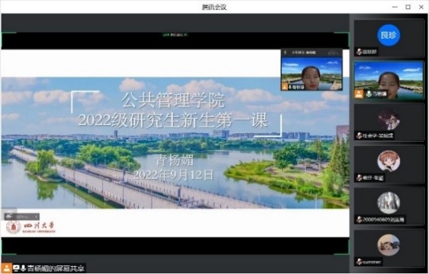 接着,学院团委书记、2022级研究生辅导员青杨媚老师就研究生生涯规划与同学们进行了交流。青老师依次从公管研究生的江安篇章、研究生生涯规划漫谈、研究生学术与实践的关系三方面,简单介绍了江安校区的生活环境,分享了研究生期间的重要时间节点把握、如何平衡学术与实践的关系的个人经验建议,并鼓励大家精准时间管理,提前做好生涯规划,珍惜宝贵的学习时间,努力书写一段精彩的研究生生涯。