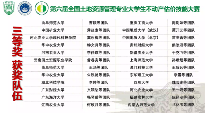 在刘润秋与廖喜生老师的指导之下,由我院土管系2019级本科生鲍敏纳、董仟禧等同学组成的队伍凭借《成都市望江楼公园公共服务价值评估》估价报告,荣获“二等奖”。此外,由我院土管系2019级本科生魏若冰、廖慧慧、曹懿璇、蒋忻玲组成的队伍,以《成都市郫都区青杠树村朱家墩28号宅基地退出补偿价值评估》估价报告,荣获“三等奖”。