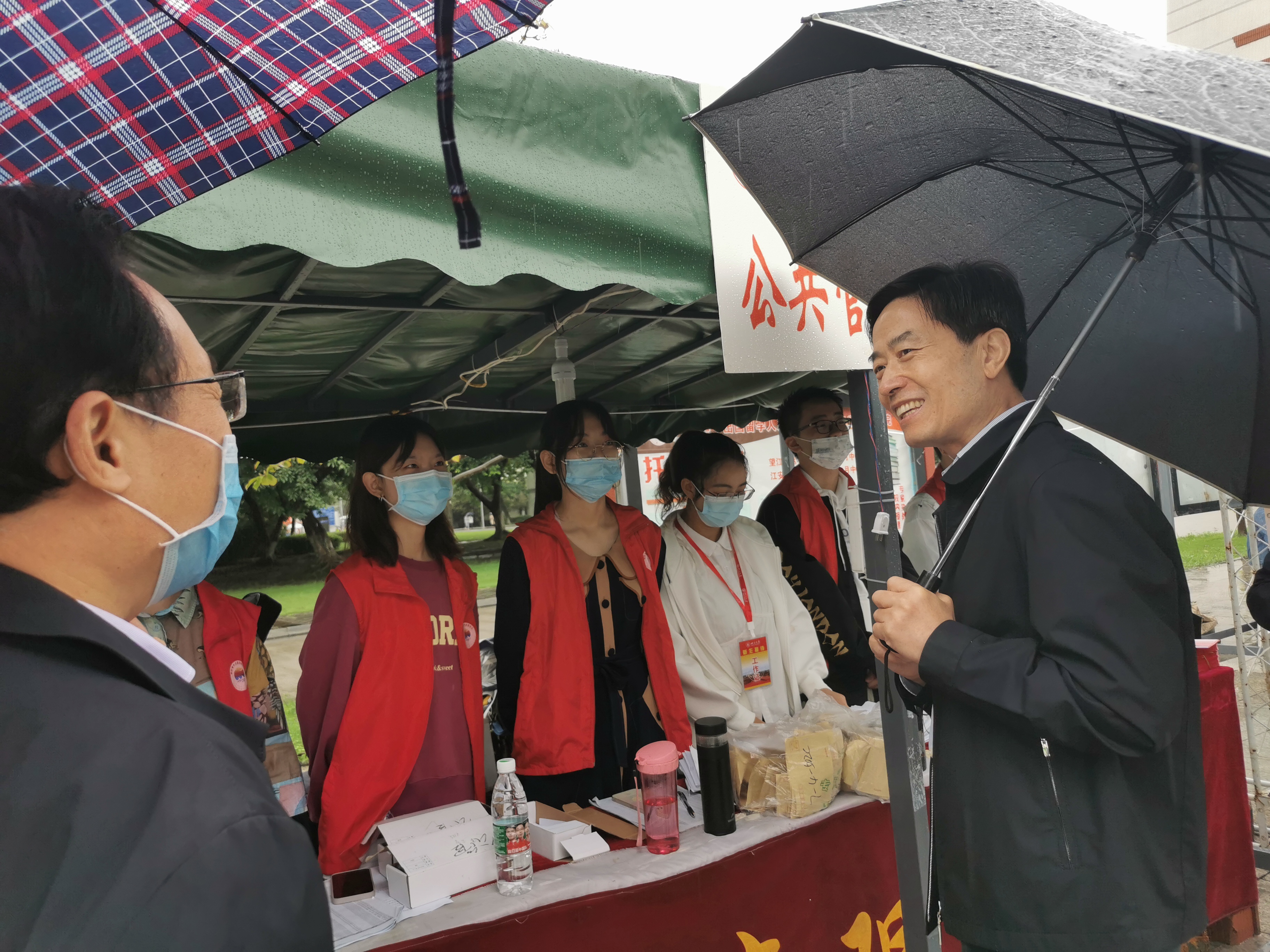 迎新报到期间,学校党委书记甘霖、校长李言荣先后来到学院迎新报到点亲切慰问同学们。甘霖书记来到迎新点了解新生报到情况,向值守岗位的老师与学生表示感谢。李言荣校长与志愿者们亲切交谈,对学院有序组织和同学们的志愿服务工作高度肯定。学院党委书记韩杰两度来到迎新报到点,指导迎新工作有序开展。