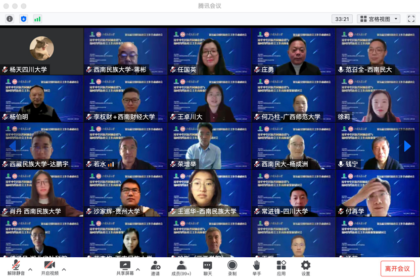 本届会议以“铸牢中华民族共同体意识与新时代民族社会工作高质量发展”为主题。来自四川大学、中央民族大学、厦门大学、西南民族大学、贵州大学、云南大学等40多所高校,80余名专家学者齐聚云端,以铸牢中华民族共同体意识为主线,围绕着中国特色民族社会工作理论和实践成果展开讨论。西南民族大学党委常委、副校长张华志教授,四川省民政厅一级巡视员杨伯明,中国社会工作教育协会副会长庄勇教授,中国社会工作教育协会民族社会工作专业委员会主任任国英教授出席开幕式并致辞。西南民族大学民族学与社会学学院院长蒋彬教授主持开幕式。我院王卓教授应邀担任第一分论坛主持人,并携团队成员常进锋博士、赵鑫同学等参会交流。