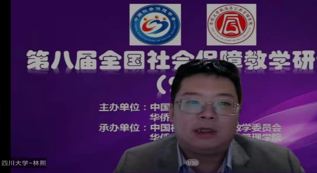 2022年11月12-13日,第八届全国社会保障教学研讨会在福建泉州以线上形式成功召开。本次研讨会由中国社会保障学会、华侨大学主办,中国社会保障学会教学委员会、华侨大学政治与公共管理学院承办。来自中国人民大学、南京大学、浙江大学、四川大学等80余所高校的210多位教师参会。我院劳动与社会保障系主任张浩淼教授带队,蒲晓红教授、李丹教授、杨红副教授、林熙副教授、张伟科副教授、杨帆研究员、田益豪副研究员一同线上参加了会议,社会保障专业硕士研究生聆听了研讨会的相关报告。