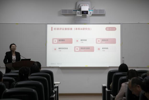 徐恩元老师从担任校督导委员的历程向老师们解析了学校督导与学院督导听评课程标准的差异,分享自己在督导工作中发现的教学亮点与存在问题,鼓励老师们认真备好每一次课,讲好每一堂课,做“传道、授业、解惑”的好老师。