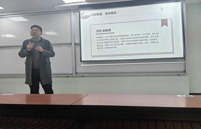 为开拓学术视野,激发科研兴趣,我院2023级本科于12月15日下午在四川大学江安校区第一教学楼B301、B103顺利开展“科研有道,学术有方”主题讲座。本次讲座特邀社会保障系杨帆老师、行政管理系刘锐老师以及康传彬、董欣、夏凡三位优秀学长学姐分享科研知识和竞赛经验。