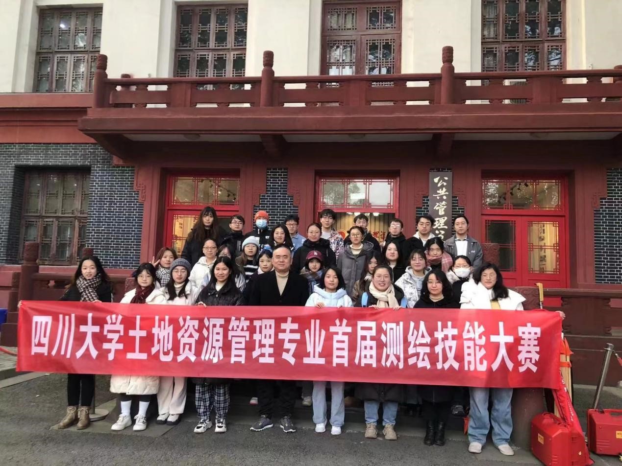 12月23日,四川大学土地资源管理专业首届测绘技能大赛成功举办,朱红波教授和2021级土地资源管理专业全体本科生参与。同学们经过分组的方式分别对公共管理学院、物理学院和干部培训基地三栋建筑进行测绘。
