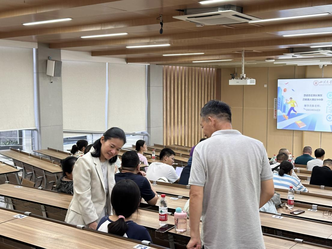 韩杰向与会家长详细介绍了四川大学及公共管理学院的历史沿革,展现了学校丰硕的研究成果、优质的教育资源与先进的育人理念。韩杰表示,学院将始终践行“公成天下,管法自然”的院训,进一步发挥多学科交叉优势,培养高层次、复合型、应用型的公管人才。