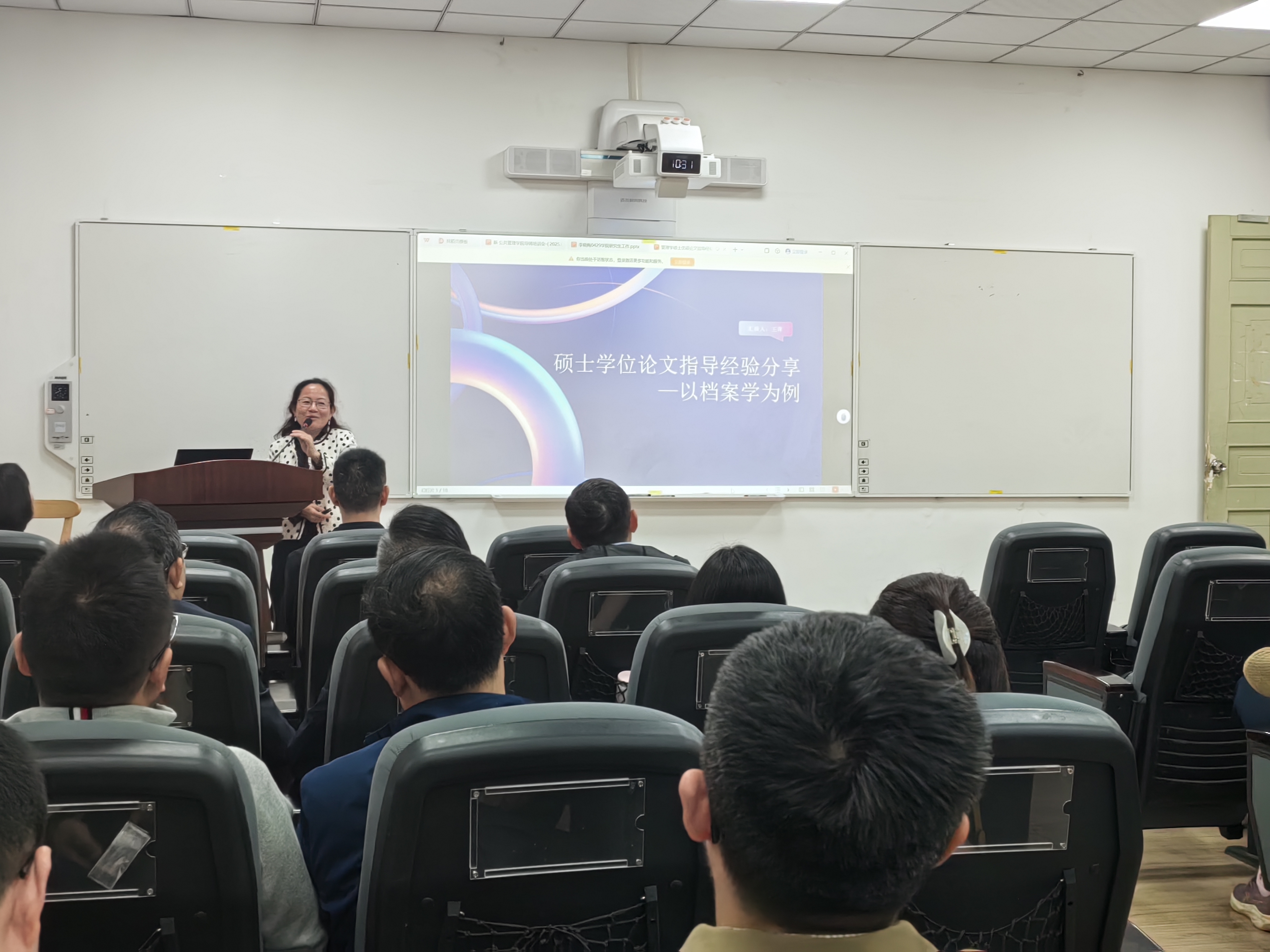 本次培训还邀请了2位优秀硕士生导师分享经验。其中,行政管理系李晓梅副研究员结合自身经历,分享了她制定的《研究生论文指导计划表》。她强调导师在平衡科研、教学的同时,要将研究生论文指导细化到每个学期,鼓励学生积极行动,在每个阶段提前完成任务。信息资源管理硕士点负责人王萍教授从优秀论文的标准、论文指导的核心理念及选题、写作、质量把关三个关键环节分享了论文指导经验。她指出,论文选题应尊重学生科研兴趣与前期基础,导师可根据研究进展和遇到的问题,帮助学生动态调整目标和计划,做好质量把关。