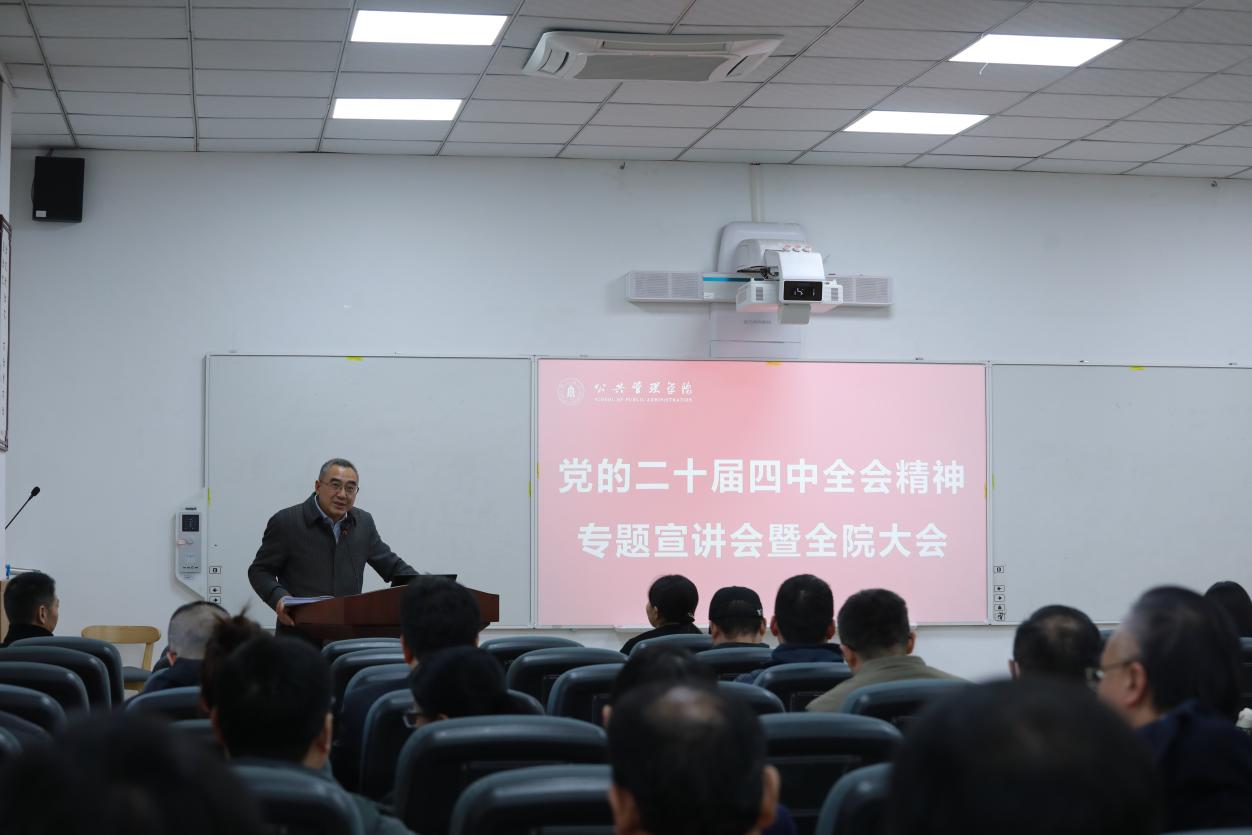 12月5日,公共管理学院在望江校区萃文楼博文报告厅召开党的二十届四中全会精神专题宣讲会暨全院大会。学院领导班子成员和全体教职工参会,会议由党委书记王彬主持。
