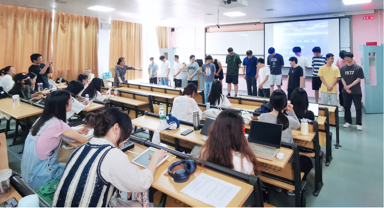 对于行止礼仪,侯苹老师采取了体验式教学的方式,邀请全体同学一同体验行止礼仪中的站姿、走资、坐姿、蹲姿。