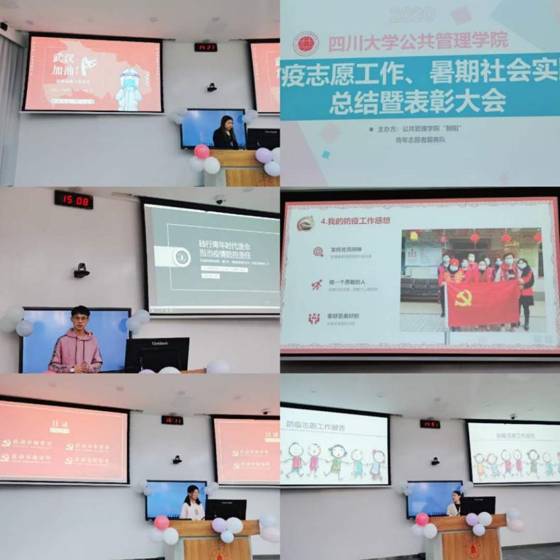 同学们通过投身于防疫志愿工作,切身体会到志愿精神的精髓所在,并充分展示出了中国新青年的责任与担当;同学们通过参加社会实践,切实提高了洞悉时代发展方向的敏觉度,从多维度提升综合素质。公管青年学子积极参与防疫志愿工作、参加社会实践活动无不体现了当代中国新青年对习近平总书记深情寄语的积极回应,在实现中华民族伟大复兴的道路上贡献自己的力量。本次防疫志愿工作、暑期社会实践总结暨表彰大会圆满结束!