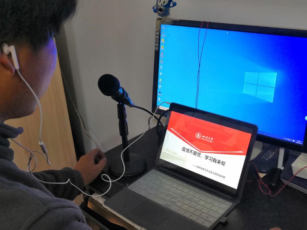 曾任四川大学第二十届研究生支教团团长的吕国庆同学对凉山彝族自治州的学生学习情况较为了解,他结合当地实际情况为中学生讲授疫情防护的相关知识以及中学生备考的学习方法与技巧,希望学生真正做到“停课不停学”。