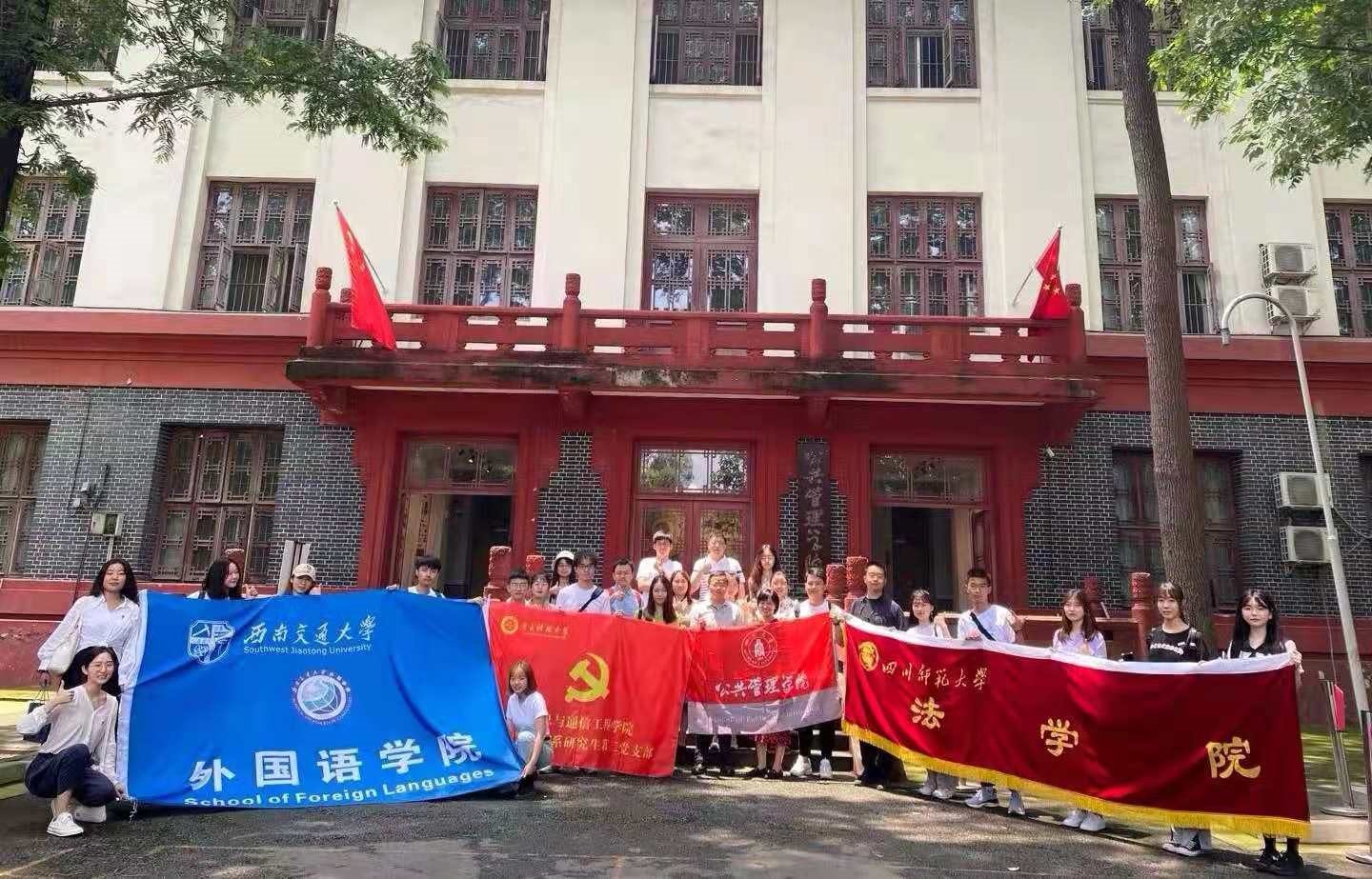 为贯彻落实习近平总书记在党史学习教育动员大会的重要讲话精神、明确“学史明理、学史增信、学史崇德、学史力行”的目标任务、将广大学生知党、信党、爱党的精神力量转化为实现人生价值的奋斗实践,四川大学公共管理学院、电子科技大学信息与通信工程学院、西南交通大学外国语学院和四川师范大学法学院联合发起了四校师生党史联学活动。6月10日上午,由四川大学公共管理学院主办的“忆峥嵘岁月——承红色基因”——四校师生党史联学第一期在我校望江校区成功举办,30余名师生代表参与了此次交流学习。