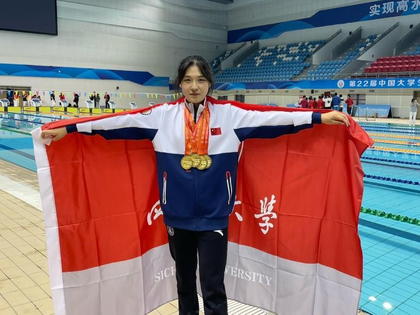 2023年她首次代表四川大学参加第21届中国大学生游泳锦标赛,不仅获得了个人单项冠军,更实现了川大游泳队全国赛事金牌零的突破。谦虚的她表示:“走下领奖台一切便从零开始”,而在她心里有一个更高的奋斗目标——全国学生运动会。
