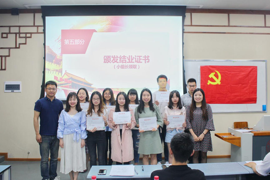 在结业典礼上,周锐老师同全体学员一起回顾了培训班从“萌芽—调研—定型”到“启动—执行—结束”的全过程。杨磊副书记首先代表学院党委,向顺利结业的全体学员表示了热烈祝贺,向参与培训班筹备、组织和课程讲授的老师和工作人员表达了感谢。杨磊副书记还希望学员们能认真做好培训总结,真正做到学有所得,学以致用。2016级本科杨丽霏同学作为学生代表,分享了学习成果和心得体会。杨丽霏同学表示一定将此次学习成果落实到今后的学习和工作中,自觉发挥好共产党员的先锋模范作用,让优秀成为共产党员的习惯。最后,参与典礼的领导与嘉宾为全体学员颁发了结业证书,为优秀学员颁发优秀学员证书。至此,公共管理学院第一期学生党员能力提升班圆满结束。