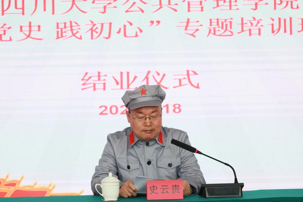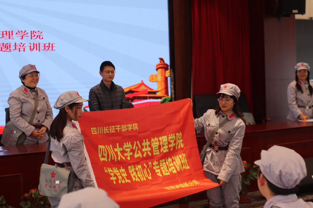 为庆祝中国共产党成立100周年,贯彻落实习近平总书记关于“学党史、悟思想、办实事、开新局”的重要讲话精神和四川省委、校党委党史学习教育相关部署要求,公共管理学院于4月16日至18日举办了“学党史 践初心”专题培训,学院党委书记姜晓萍、院长史云贵带领党委委员、党支部书记、教职工和学生党员代表等40余名干部师生参加了学习。此次培训采取实景教学、现场教学、体验教学、理论教学等多种形式,通过感悟长征精神、追寻红色足迹、重温红色故事,引导学员们进一步坚定理想信念,铭记初心使命,锤炼党性、砥砺心志、铿锵前行。