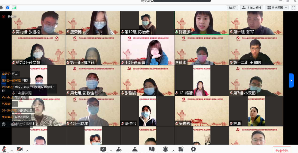 为进一步提高学生党员的党性修养,提升学生党员综合能力,充分发挥学生党员在学生中的先锋模范作用,2021年11月13日至14日,为期两天的公共管理学院第五期党员能力提升班在线上顺利开展。