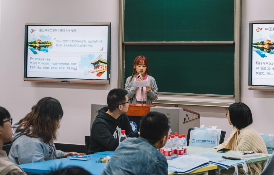 来自电子科技大学的尚元哲同学分享了信息与通信工程学院2020级研究生第五党支部的党史学习教育概况和经验;西南交通大学外国语学院的周雨平同学介绍了改革开放的历史成就、经验启示;四川师范大学法学院的郭懿同学以时间线为轴,讲述了从1921年至2021年建党百年·中国法治建设的光辉历程;四川大学公共管理学院陈雨婕同学从社会学专业的角度探讨了中国共产党百年党史与中国社会学发展的历史渊源,分享了从党史教育中发现社会学新视野的思考。在自由交流环节,同学们就如何开展形式多样的党史学习教育、如何让参与党史学习活动的同学学有所思学有所获、如何更有效践行党史学习心得展开了充分交流交流。