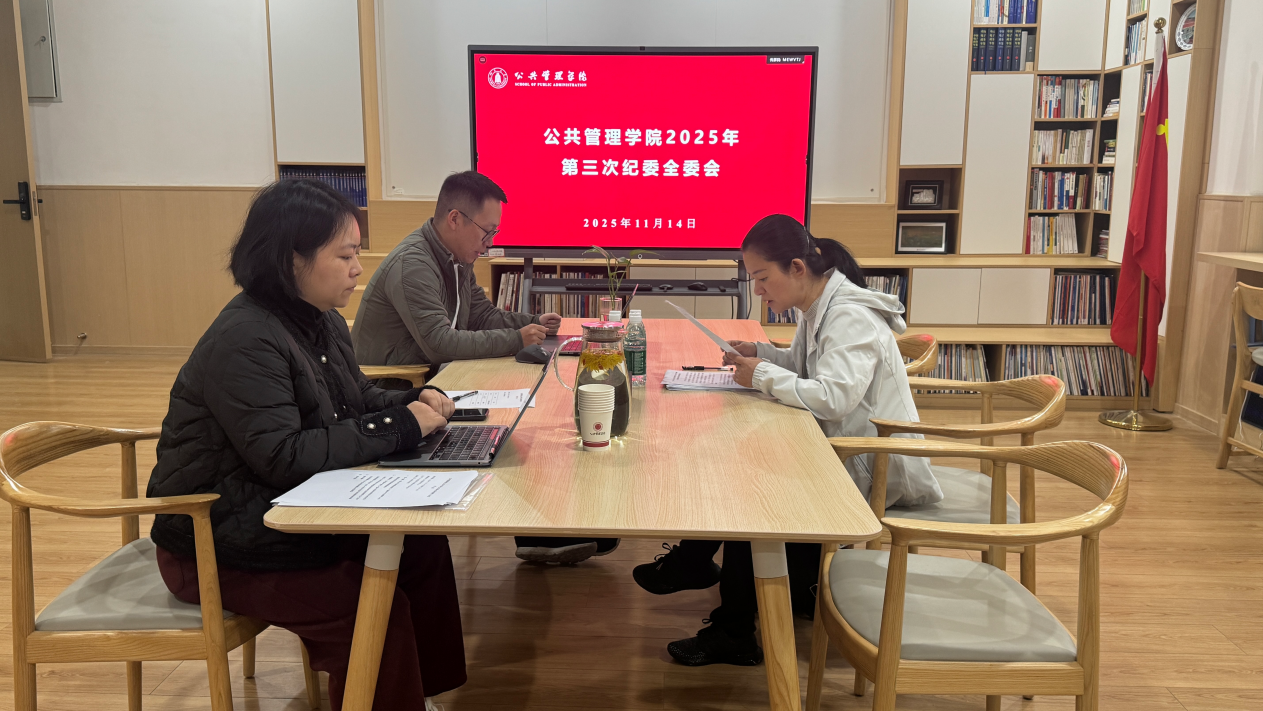 11月14日,公共管理学院在望江校区萃文楼115召开2025年第三次纪委全委会。会议由学院党委副书记兼纪委书记罗亚玲主持,除纪委委员赵跃因工作安排请假外,其余纪委委员均参加了此次会议。