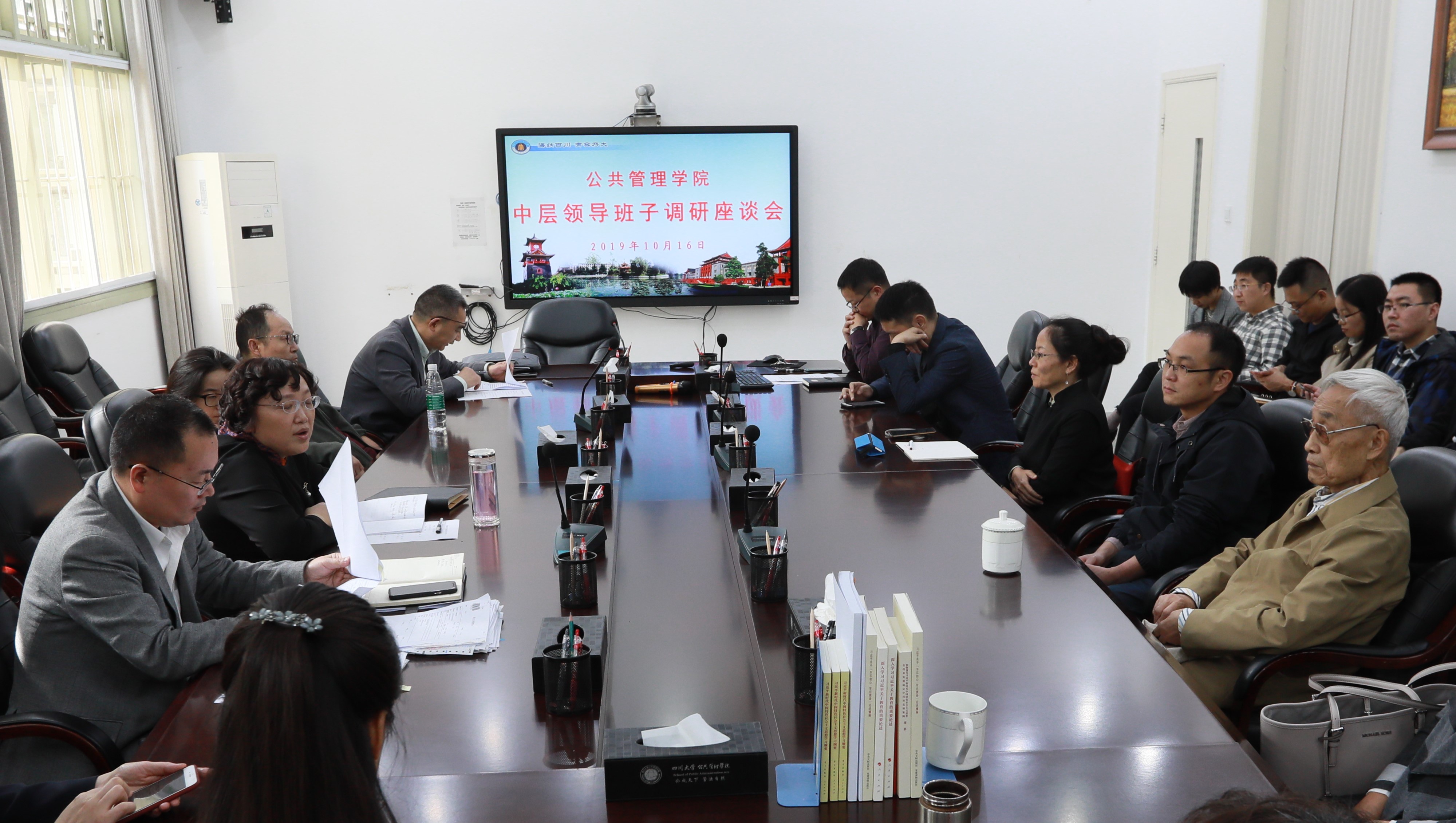 10月16日下午,公共管理学院领导班子召开“不忘初心,牢记使命”专题调研座谈会,认真听取学院师生对院领导班子及班子成员的意见建议。座谈会由学院党委书记姜晓萍主持,学院全体领导班子成员、师生代表、党支部书记、党员代表、党外人士代表、离退休老师代表参加了此次会议。