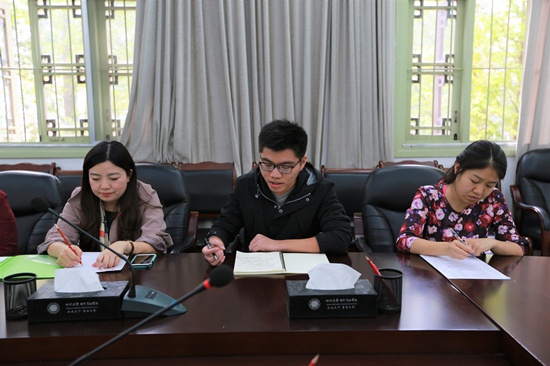 院长史云贵同志表示,十九大报告继往开来、求真务实。史院长首先对学习贯彻十九大报告精神提出了具体要求:一是要科学谋划,做好宣传,将十九大精神真正落实到实际行动中;二是要有理论研究,鼓励老师开展研究,发表相关主题的文章;三,要让十九大精神学习入脑入心。最后结合学院工作实际,史院长希望广大党员同志不忘初心,全心全意为全体师生员工服务。