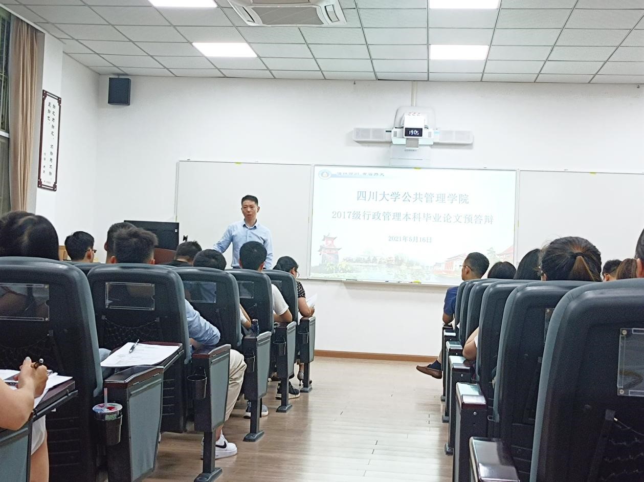 为了进一步强化行管本科生学术能力培养,提高学术研究水平,行政管理系2021届本科学位论文预答辩会于2021年5月16日晚上7点在公共管理学院105教室准时召开。为了更加有效精准地指导学生,预答辩分为三个小组在三个教室同时进行,并且采用一对一的方式。范逢春老师、李强彬老师、衡霞老师、刘锐老师、刘清老师出席并担任答辩评委,2021届行政管理系全体本科生参会。