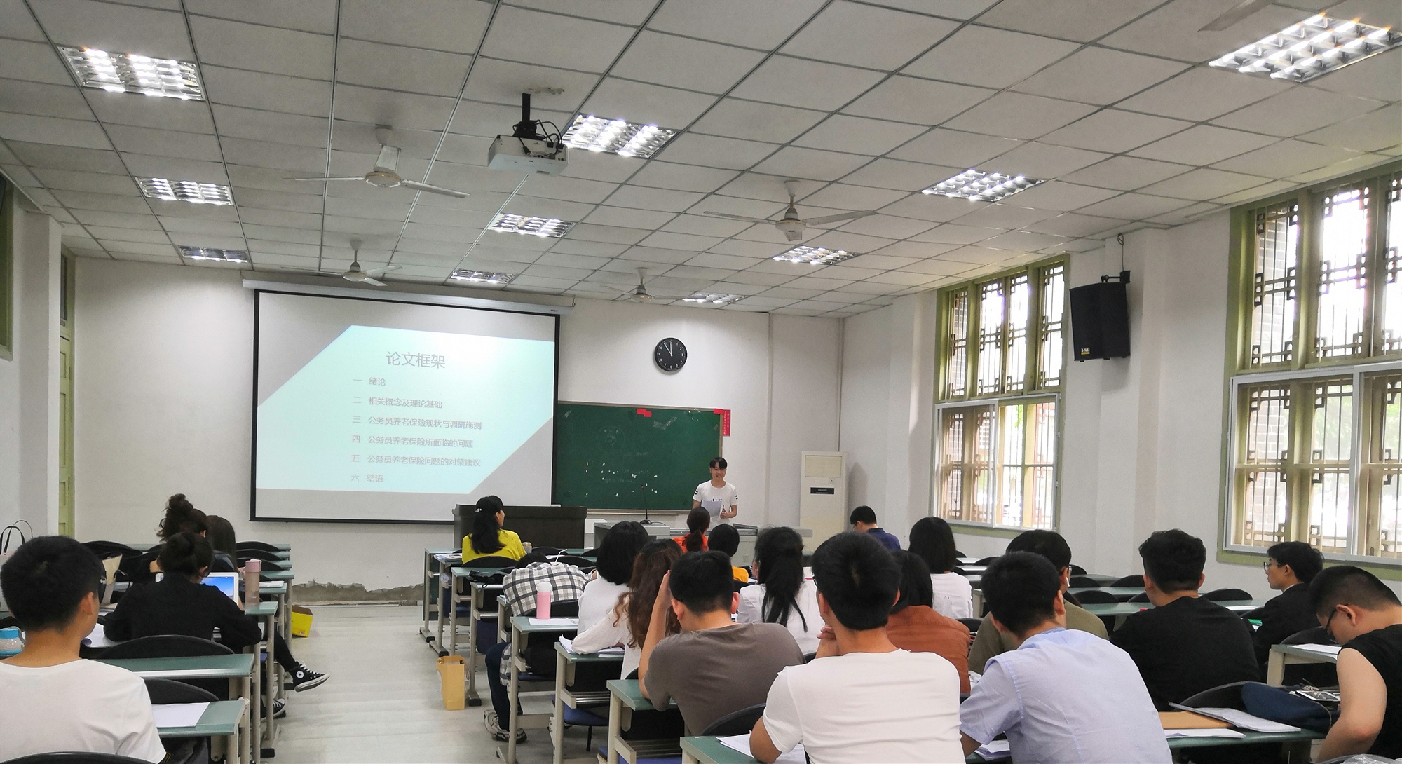 2019年5月25日上午8点30分,2019届劳动与社会保障系本科毕业论文答辩于公共管理学院楼正式举行。李丹老师、贾爱媛老师、张浩淼老师、蒲晓红老师、杨红老师、林熙老师、罗哲老师、沙治慧老师和黄国武老师等9位老师担任答辩老师,2019届劳动与社会保障系全体学生共68人参加答辩。遵循指导老师与答辩老师交叉不重复的原则,劳动与社会保障专业2019届本科毕业论文答辩在公共管理学院楼106、114、306三个教室分三组同时进行。