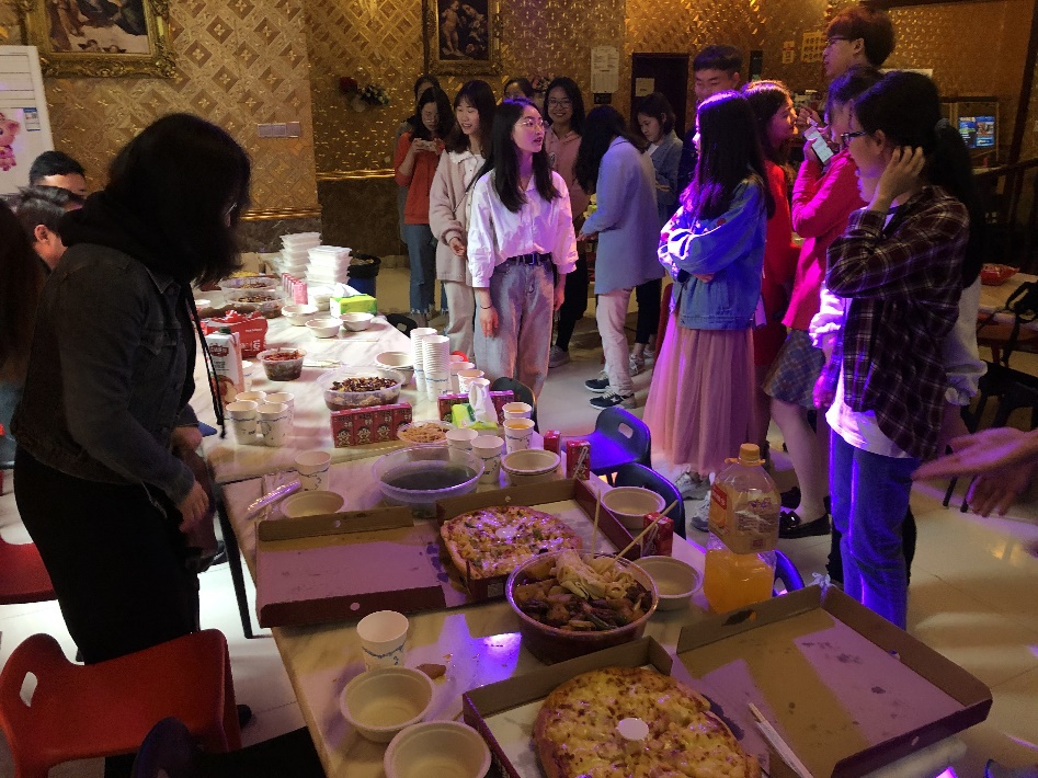 餐后,大家在门口合照,之后一同展开了一系列的娱乐活动,大家还共同合唱了歌曲。在欢聚玩乐之时,2017级公事管系班长代表全班同学,将润喉糖与几支康乃馨送予老师,这代表了同学们对老师的祝福。