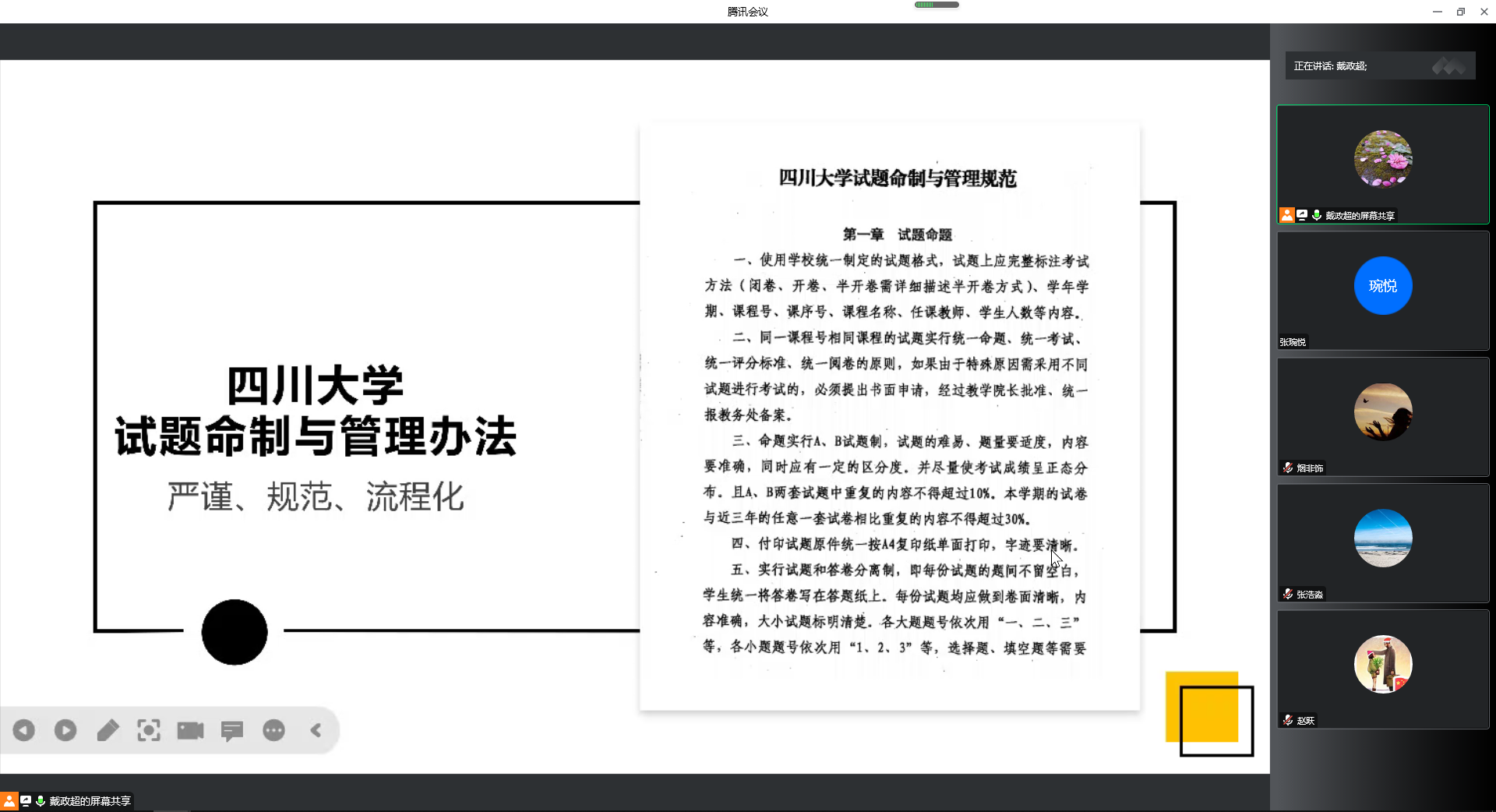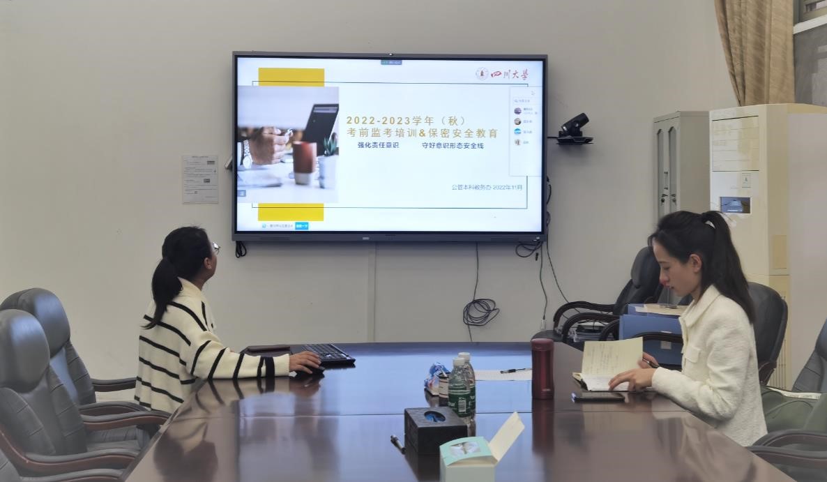 为保证本学期考试工作顺利进行,严肃考风考纪,我院于2022年11月3日上午在望江校区萃文楼220室召开2022-2023学年秋季学期半期考前监考培训会。会议同时以腾讯会议的方式线上进行。