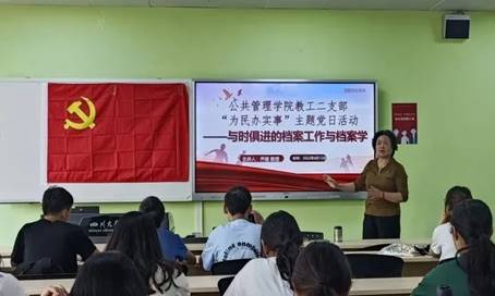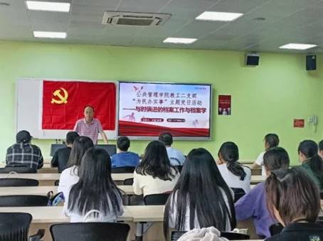 为切实抓好党史学习教育“我为群众办实事”实践活动,实现政治思想引领专业发展的工作目标,加深档案专业同学对档案学学科认识,2022年4月12日下午,公共管理学院教工二支部于江安校区综合楼B座305教室举行了“为民办实事”系列主题活动之“与时俱进的档案工作与档案学”专题讲座,由秘书档案学系乔健教授主讲,教工二支部书记陈丽教授主持,档案学专业21级全体同学和20级部分同学参加。