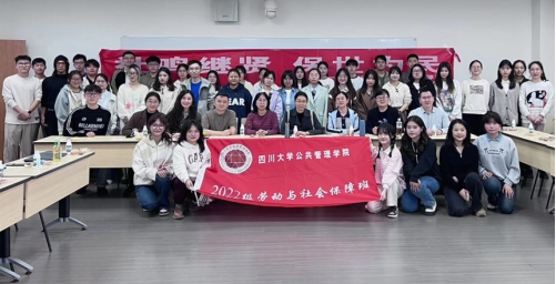 近日,劳动与社会保障专业在江安校区第一教学楼举行了一场别开生面的2022级本科师生见面会。罗亚玲、罗哲、吴敏、沙治慧、张浩淼、黄国武、彭峰、吴茜玲、曾路遥等9位老师和全班41位同学一起参加了这场别具意义的盛会。见面会由2022级劳动与社会保障专业组织委员杨佳瑞同学主持。